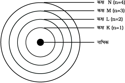 • परमाणु के कक्षों को K, L, M, N…… नाम दिया गया है।