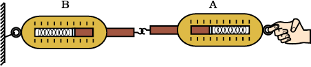 चित्र 9.2: (a) बल लगाने पर स्प्रिंग फैलती है।