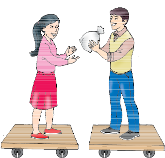 गाड़ी पर सवार लड़की 4.65 m s–1 के वेग से छलाँग लगाने की दिशा में चलेगी (चित्र 9.18)।