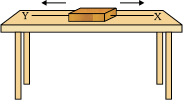 चित्र 9.3 में लकड़ी का एक पिंड एक समतल मेज पर रखा है। चित्र में दर्शाए अनुसार, दो धागे X और y पिंड के विपरीत सिराें से जुड़े हैं। अगर हम किसी बल द्वारा धागे X को खींचते हैं, तो पिंड दाहिनी ओर खिसकना शुरू करता है। उसी प्रकार अगर हम धागे y को खींचते हैं, तो पिंड बाईं ओर खिसकना शुरू करता है। लेकिन अगर पिंड को दोनों ओर से समान बल द्वारा खींचा जाता है, तो एेसी दशा में पिंड गति नहीं करता। इस तरह के बलों को संतुलित बल कहते हैं तथा यह गति की अवस्था को परिवर्तित नहीं करता। अब एक एेसी अवस्था की कल्पना करें, जिसमें भिन्न परिमाण के दो विपरीत बल पिंड को खींचते हैं। इस अवस्था में, पिंड अधिक बल वाली दिशा में खिसकना शुरू करेगा। इस प्रकार दोनों बल संतुलित नहीं हैं और असंतुलित बल पिंड के खिसकने की दिशा में कार्य करता है। इससे यह पता चलता है कि किसी भी पिंड पर लगने वाला असंतुलित बल उसे गति प्रदान करता है।