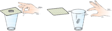 • काँच के एक खाली गिलास के ऊपर एक कड़े ताश का पत्ता रखें।