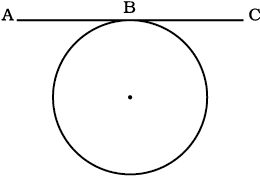 कोई सरल रेखा जो वृत्त से केवल एक ही बिंदु पर मिलती है, वृत्त पर स्पर्श रेखा कहलाती है। इस चित्र में सरल रेखाABC वृत्त के बिंदु B पर स्पर्श रेखा है।