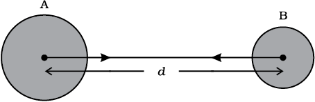 मान लीजिए M तथा m द्रव्यमान के दो पिंड A तथा B एक-दूसरे से d दूरी पर स्थित हैं (चित्र 10.2)। मान लीजिए दोनों पिंडों के बीच आकर्षण बल F है। गुरुत्वाकर्षण के सार्वत्रिक नियम के अनुसार, दोनों पिंडों के बीच लगने वाला बल उनके द्रव्यमानों के गुणनफल के समानुपाती है। अर्थात्,