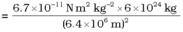 पृथ्वी का द्रव्यमान, M = 6 × 1024 kg