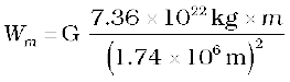 चंद्रमा का द्रव्यमान, m = 7.4 × 1022 kg