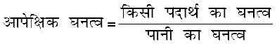 1000 kg m-3  है। किसी पदार्थ के नमूने का घनत्व, उस पदार्थ की शुद्धता की जाँच में सहायता कर सकता है।