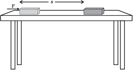 किसी सतह पर रखे एक गुटके को धकेलें। गुटका कुछ दूरी तय करता है। आपने गुटके पर कुछ बल लगाया जिससे गुटका विस्थापित हो गया। इस स्थिति में कार्य हुआ।