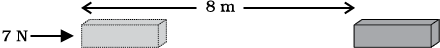 1. किसी वस्तु पर 7 N का बल लगता है। मान लीजिए बल की दिशा में विस्थापन 8 m है (चित्र 11.3)। मान लीजिए वस्तु के विस्थापन के समय लगातार वस्तु पर बल लगता रहता है। इस स्थिति में किया गया कार्य कितना होगा?