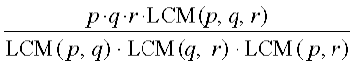 HCF (p, q, r) × LCM (p, q, r) ≠ p × q × r, where p, q, r are positive integers (see Example 8). However, the following results hold good for three numbers p, q and r :