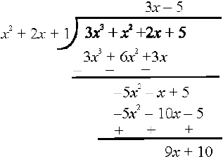 (x2 + 2x + 1) × (3x – 5) + (9x + 10) = 3x3 + 6x2 + 3x – 5x2 – 10x – 5 + 9x + 10