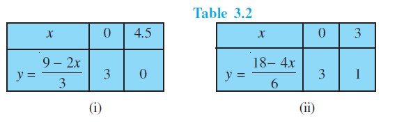 Let us represent these equations graphically. For this, we need at least two solutions for each equation. We give these solutions in Table 3.1.