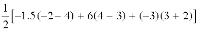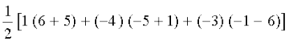 The area of the triangle formed by the vertices A(1, –1), B(– 4, 6) and C (–3, –5), by using the formula above, is given by