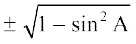 cos2 A = 1 – sin2 A, i.e., cos A =