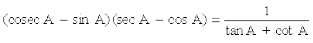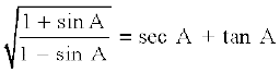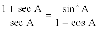 sec2 A – tan2 A = 1 for 0° ≤ A < 90°,