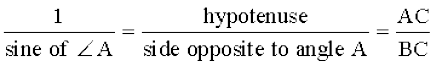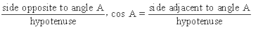 Note that the symbol sin A is used as an abbreviation for ‘the sine of the angle A’. sin A is not the product of ‘sin’ and A. ‘sin’ separated from A has no meaning. Similarly, cos A is not the product of ‘cos’ and A. Similar interpretations follow for other trigonometric ratios also.