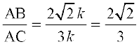 AB2 = AC2 – BC2 = (3k)2 – (k)2 = 8k2 = (2
