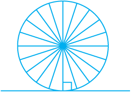 Now look around you. Have you seen a bicycle or a cart moving? Look at its wheels. All the spokes of a wheel are along its radii. Now note the position of the wheel with respect to its movement on the ground. Do you see any tangent anywhere? (see Fig. 10.4). In fact, the wheel moves along a line which is a tangent to the circle representing the wheel. Also, notice that in all positions, the radius through the point of contact with the ground appears to be at right angles to the tangent (see Fig. 10.4). We shall now prove this property of the tangent.