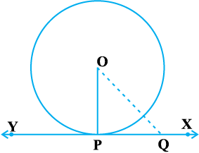 (Why? Note that if Q lies inside the circle, XY will become a secant and not a tangent to the circle). Therefore, OQ is longer than the radius OP of the circle. That is,