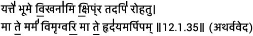 हे भूमि! मैं जो तुम में खड्डा (गर्त) खोदता हूँ, वह शीघ्र ही भर जावे। मैं तुम्हारे मर्म (चराचर जगत) को और हृदय को हत करने वाला न बनूँ।