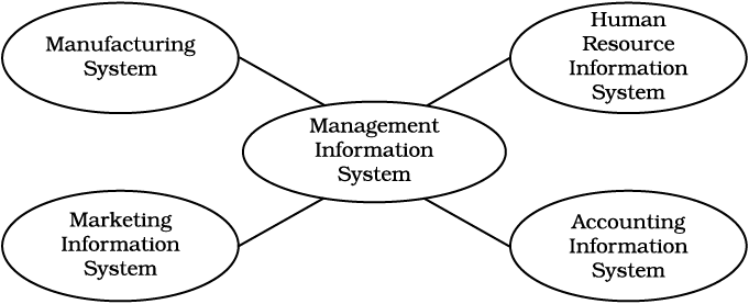 Look at figure 12.4. It depicts the relationship between the three information systems, viz. manufacturing information system, accounting information system and the human resource information system.