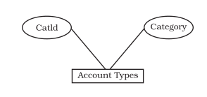 AccountsType is a conceptual entity that is meant to express the various categories of accounts in accounting system. The CatId is an attribute of AccountType entity, the value of which is used to identify the category of accounts.