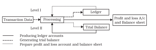 (v) Output of Data : The accounting reports such as ledger, trial balance, etc. are obtained in a pre-designed format by accessing the transformed data.