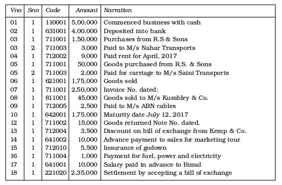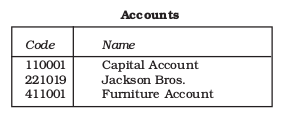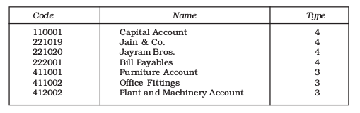 • There is an exhaustive list of Accounts with respect to which the transactions are documented. Each Account carries a unique numeric code with its width equal to six digits.