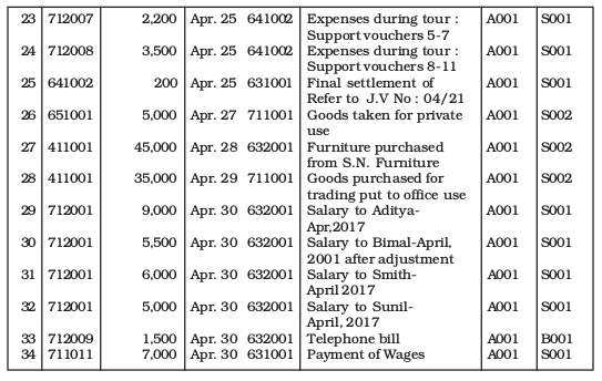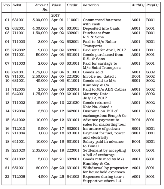 • Each voucher documents date of transaction, account name along with its account code for debit as well as credit entry.