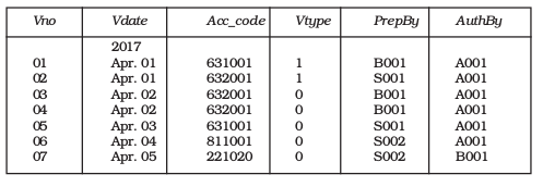 • Each Voucher is prepared by a particular Employee and authorised by another employee.