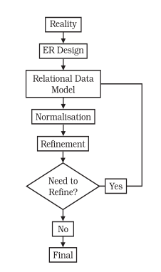 Refinement : This is the outcome of the process of normalisation as mentioned above. The final database design is arrived at after the process of normalisation is completed.