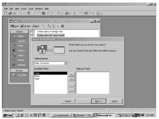 5. Briefly explain in steps the method of creating a query, using wizard.