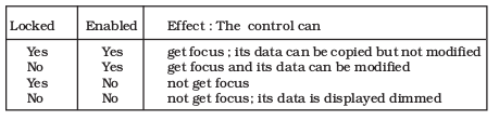 (ii) Look up : The look up feature is used by a field to find its values in another table, query or from a fixed list of values. A list of valid values can be displayed using a list box or combo box. Text box is the default display control of look up. Look up is created in case of a field, which is foreign key (many side) into primary key (one side) between the tables that have one-to-many relationship. Its other display controls are list control and combo control. When list box or combo box is used as display control in look up, it is important to specify the row source type (that is table, query or list of values or field list). The list of values must be separated by comma. Some additional properties in case of list box or combo box are meant to specify the bound column whose values are copied to this field as references. Number of columns to appear in the list box or combo box is determined by column count property.