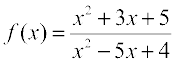 Solution Since x2 –5x + 4 = (x – 4) (x –1), the function f is defined for all real numbers except at x = 4 and x = 1. Hence the domain of f is R – {1, 4}.