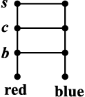 (red, b), (red, c), (red, s), (blue, b), (blue, c), (blue, s).
