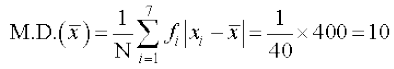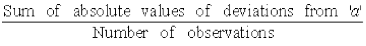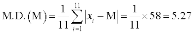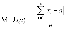 Remember that, in finding a suitable measure of dispersion, we require the distance of each value from a central tendency or a fixed number ‘a’. Recall, that the absolute value of the difference of two numbers gives the distance between the numbers when represented on a number line. Thus, to find the measure of dispersion from a fixed number ‘a’ we may take the mean of the absolute values of the deviations from the central value. This mean is called the ‘mean deviation’. Thus mean deviation about a central value ‘a’ is the mean of the absolute values of the deviations of the observations from ‘a’. The mean deviation from ‘a’ is denoted as M.D. (a). Therefore,