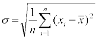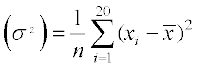 be the mean of x1, x2, ...,xn . Then the variance is given by