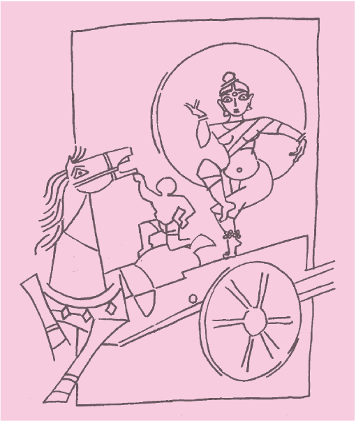 जनरल स्टोर के सामने से अकसर घूँघट ताने गुज़रने वाली एक स्त्री का स्केच, गेहूँ की बोरी उठाए मज़दूर की पेंचवाली पगड़ी का स्केच, पठान की दाढ़ी और माथे पर सिज़दे के निशान, बुरका पहने औरत और बकरी का बच्चा। अकसर वह स्त्री कपड़े धोने के साबुन की टिकिया लेने आया करती। चाचा को देखकर घूँघट के पट खुल जाते और अकसर मकबूल की नाक पकड़कर खिलखिला उठती। मकबूल ने उसके कई स्केच बनाए। एक स्केच उसके हाथ लग गया जिसे उसने छिपा लिया। मकबूल ने पेपरमिंट की गोली हाथ में थमाई और स्केच निकलवाया।