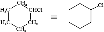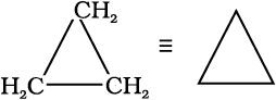 चक्रीय यौगिकों में आबंध-रेखा सूत्रों को इस प्रकार दर्शाया जा सकता है–