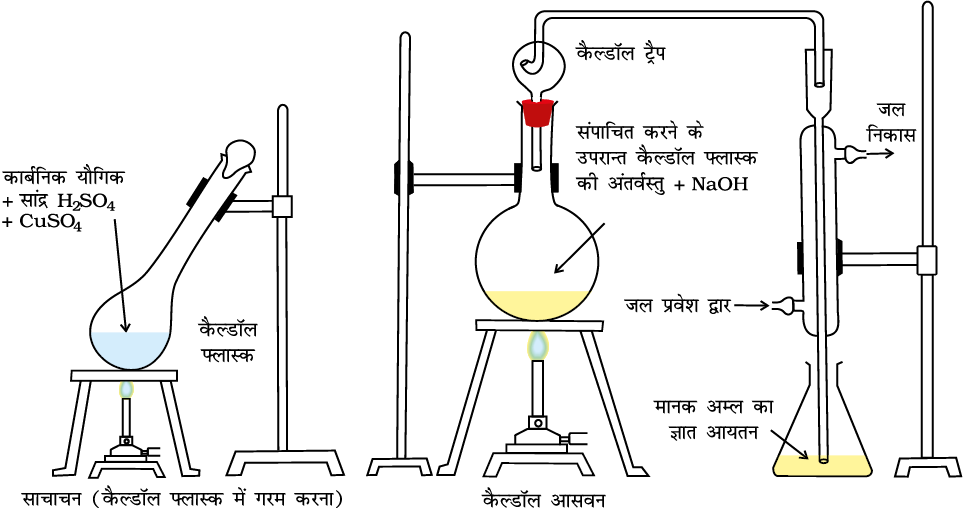 12.22 किसी कार्बनिक यौगिक में नाइट्रोजन के आकलन की (i) ड्यूमा विधि तथा (ii) कैल्डॉल विधि के सिद्धांत की रूप-रेखा प्रस्तुत कीजिए।