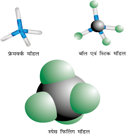 चित्र 12.1 CH4 के वेज तथा डैश सूत्र प्रदर्शन