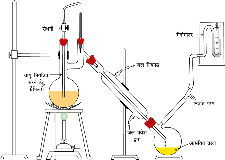 12.20 आसवन, निम्न दाब पर आसवन तथा भाप आसवन में क्या अंतर है? विवेचना कीजिए।