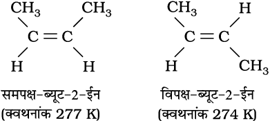 13.9 हैक्स-2-ईन की समपक्ष (सिस) तथा विपक्ष (ट्रांस) संरचनाएं बनाइए। इनमें से कौन-से समावयव का क्वथनांक उच्च होता है और क्यों?