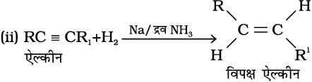 (i) एेल्किल हैलाइडों (फ्लुओराइडों के अलावा) का जिंक तथा तनु हाइड्रोक्लोरिक अम्ल द्वारा अपचयन करने पर एेल्केन प्राप्त होते हैं।