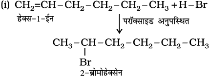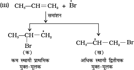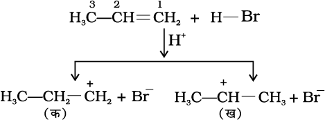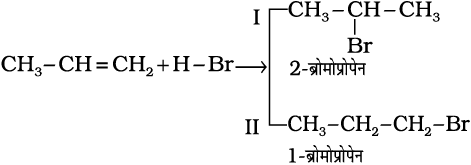 13.16 प्रोपीन पर HBr के संकलन से 2-ब्रोमोप्रोपेन बनता है, जबकि बेन्जॉयल परॉक्साइड की उपस्थिति में यह अभिक्रिया 1-ब्रोमोप्रोपेन देती है। क्रियाविधि की सहायता से इसका कारण स्पष्ट कीजिए।