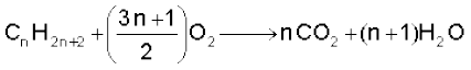 किसी हाइड्रोकार्बन की सामान्य दहन अभिक्रिया को निम्नलिखित रासायनिक अभिक्रिया द्वारा प्रदर्शित किया