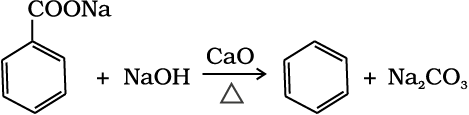 (i) कार्बोक्सिलिक अम्लों के सोडियम लवण को सोडा लाइम (सोडियम हाइड्रॉक्साइड एवं कैल्सियम अॉक्साइड के मिश्रण) के साथ गरम करने पर कार्बोक्सिलिक अम्ल से एक कम कार्बन परमाणु वाले एेल्केन प्राप्त होते हैं। कार्बोक्सिलिक अम्ल से कार्बन डाइअॉक्साइड के इस विलोपन को विकार्बोक्सिलीकरण (decarbo- rytation) कहते हैं।