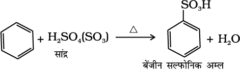 दहन– बेन्जीन को वायु की उपस्थिति में गरम करने पर कज्जली लौ के साथ CO2 एवं H2O बनती है।