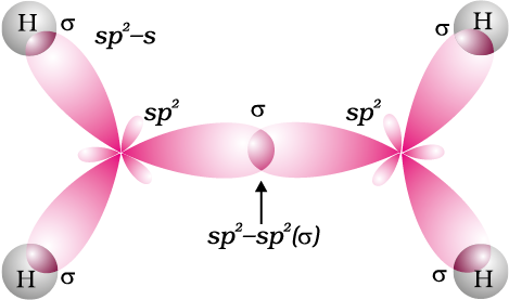 एेल्केनों के चतुष्फलक आपस में जुड़े रहते हैं, जिनमें C-C तथा C-H आबंधों की लंबाइयाँ क्रमशः 154 pm और 112 pm होती हैं (एकक-12 देखिए)। आप पहले अध्ययन कर चुके हैं कि C-C तथा C-Hσ (सिग्मा) आबंध का निर्माण कार्बन परमाणु के संकरित sp3 तथा हाइड्रोजन परमाणुओं के 1s के समाक्षीय अतिव्यापन से होता है।