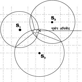 6. ये वृत्त आपस में एक बिंदु पर काटेंगे। यह बिंदु ही भूकंप अधिकेंद्र है।