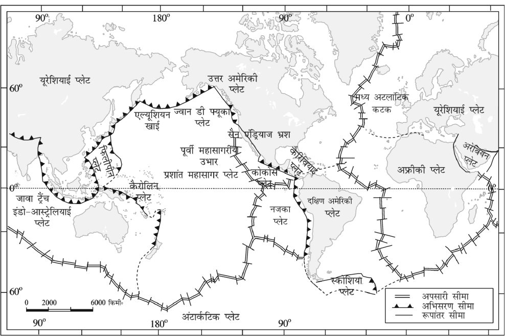 चित्र 4.5 ः संसार की प्रमुख बड़ ी व छोटी प्लेट का वितरण